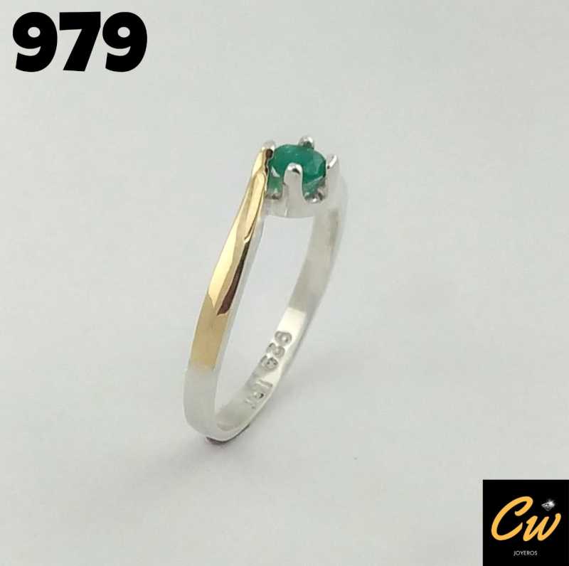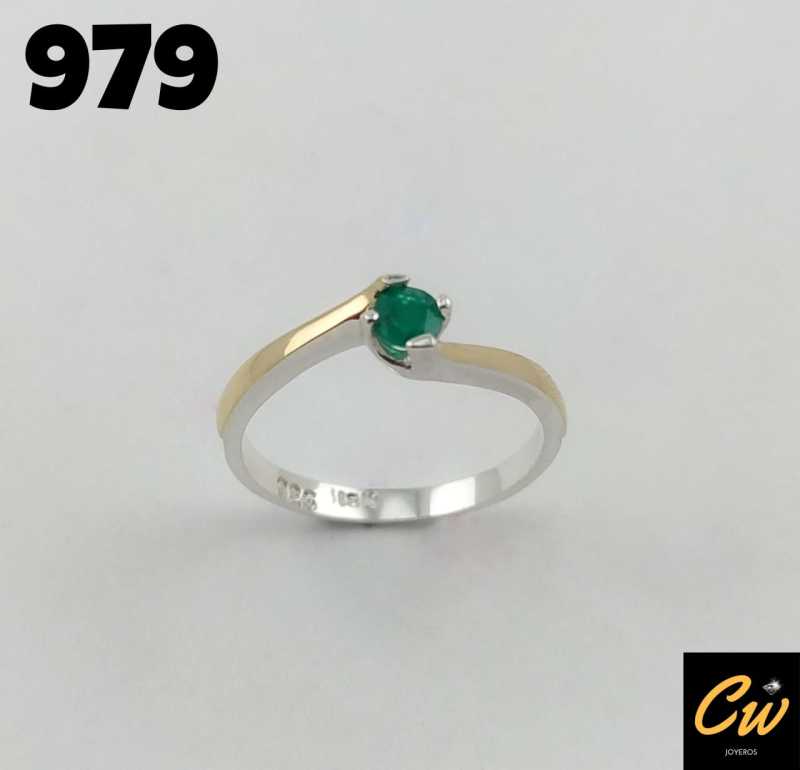Anillo de compromiso en OroPlata con Esmeralda ( 979 )